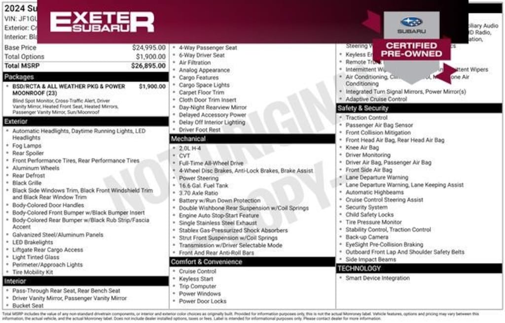 Subaru Certified Pre-Owned Details: