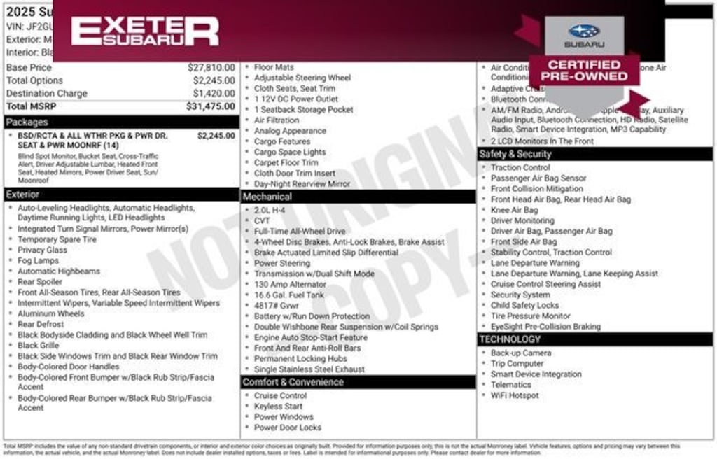 Subaru Certified Pre-Owned Details: