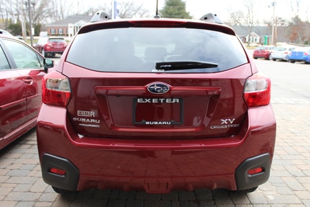| You'll notice an inverted rear valance on these models. The XV Crosstrek has the black rugged molding that runs along the front and sides ends surrounding the rear bumper corner reflectors while the Impreza has the black molding in the middle between the two reflectors. | |