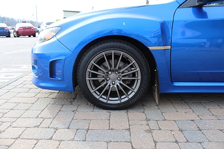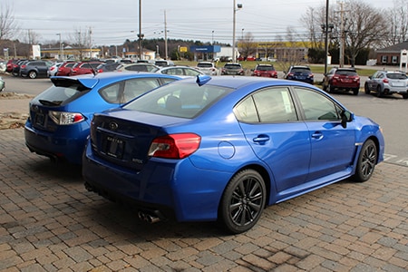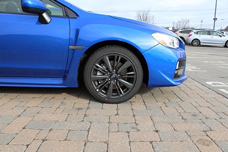 | New rim designs make an appearance for the 2015 Subaru WRX. The old model had one set of rims across all trims and options, the new model comes with the matte black rims on the left or a STI 15-spoke 17" gloss black set as part of the WRX Sport Package (not shown). | |