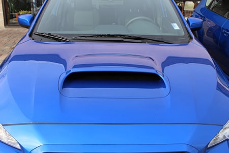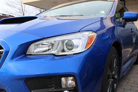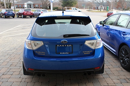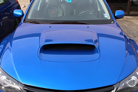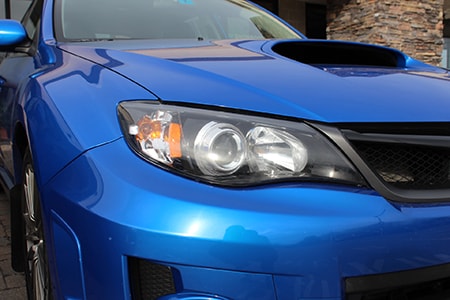 | The body may have a more subtle sport approach, but no one told the front bumper that. People often say "it looks like it's moving fast even when it's standing still." It takes the standard Impreza front end and puts it on steroids as you can see front the headlight/fog light assembly. | |