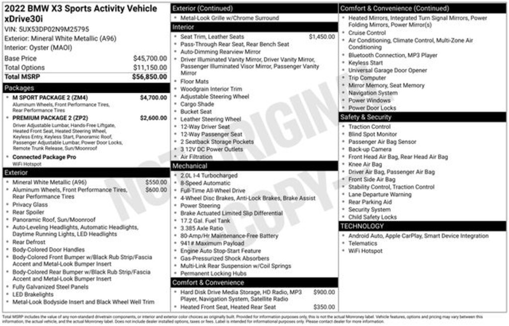 Mineral White Metallic 2022 BMW X3 xDrive30i AWD 4D Sport Utility 8-Speed Automatic Sport 2.0L I4 TwinPower Turbo 21/28 City/Highway MPG