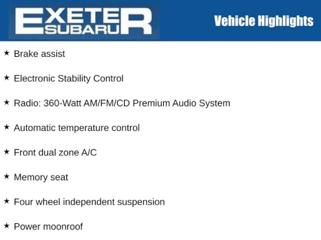 ![]() | Exeter Subaru is your best stop for New and Used vehicles. We're constantly expanding to accommodate our incoming inventory of New Vehicles. So if you don't see something on our Stratham, NH lot, ask a product specialist if we have a vehicle in stock as it may be down the road on one of our two overflow lots. We also take in trades daily and go to the auctions twice a week. If you don't see anything on our site today, check again for new additions tomorrow. Providing the best Used Subaru's and other manufacturer's vehicles to the Exeter, Somersworth, Dover, Plaistow, North Hampton, and Manchester areas. All prices are based on utilizing all available dealer discounts and financing. |