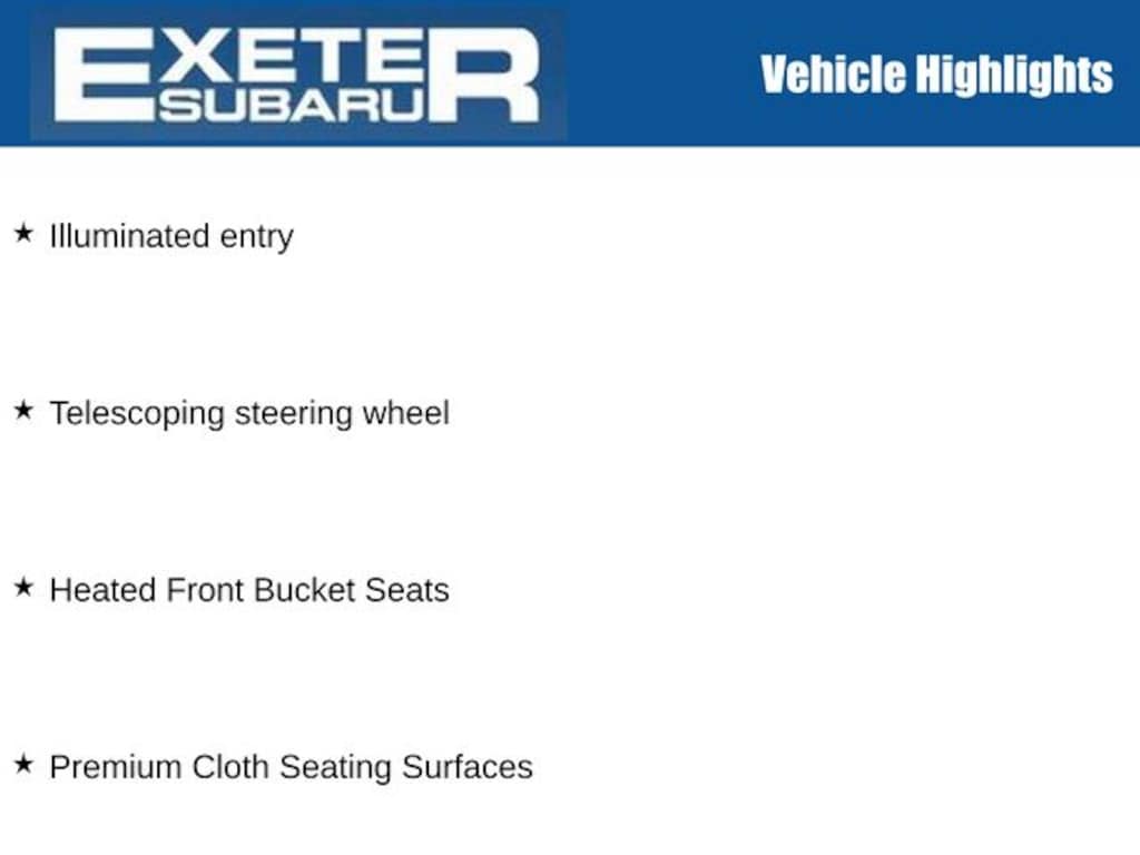 ![]() | Exeter Subaru is your best stop for New and Used vehicles. We're constantly expanding to accommodate our incoming inventory of New Vehicles. So if you don't see something on our Stratham, NH lot, ask a product specialist if we have a vehicle in stock as it may be down the road on one of our two overflow lots. We also take in trades daily and go to the auctions twice a week. If you don't see anything on our site today, check again for new additions tomorrow. Providing the best Used Subaru's and other manufacturer's vehicles to the Exeter, Somersworth, Dover, Plaistow, North Hampton, and Manchester areas. All prices are based on utilizing all available dealer discounts and financing. |