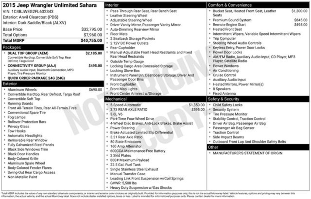 I really do love my 2011 Jeep Wrangler Sahara Unlimited. I have been so pleasantly surprised at how great it handles and the tork and power it has. I wish I could keep it but I've got to have a big vehicle with alot of extra storage space for my business as a contractor as well as a musician that has to haul drums,a keyboard and a small PA system. Putting the back seats down flat does give me plenty of room for my 5 pc. drum kit w/cases but not for the rest of my equipment. I just can't afford 2 car payments either. I love the way my Jeep looks inside, the great stereo, the incredible heat and air conditioning, comfortable seats, the grip of the steering wheel in my hands and especially the tough and rugged outside appearance yet with a touch of elegance with the silver hardtop and 18” alloy wheels. Plus I've always wanted a Jeep since I was about 17yrs.old. Oh well, anyway...no complaints. Oh,by the way, the miles I put on the vehicle are almost entirely highway miles that I would have to travel in my business. I'm just looking for a good home and grateful, conscientious owner like I've been for my Wrangler. I'm also gonna miss the hand waves and acknowledgments from all my fellow Jeep buddies as we drive down the road. If you already own a Jeep you know what I'm talking about. If not...welcome to the Family! : )…
