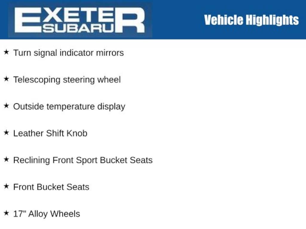 ![]() | Exeter Subaru is your best stop for New and Used vehicles. We're constantly expanding to accommodate our incoming inventory of New Vehicles. So if you don't see something on our Stratham, NH lot, ask a product specialist if we have a vehicle in stock as it may be down the road on one of our two overflow lots. We also take in trades daily and go to the auctions twice a week. If you don't see anything on our site today, check again for new additions tomorrow. Providing the best Used Subaru's and other manufacturer's vehicles to the Exeter, Somersworth, Dover, Plaistow, North Hampton, and Manchester areas. All prices are based on utilizing all available dealer discounts and financing. |