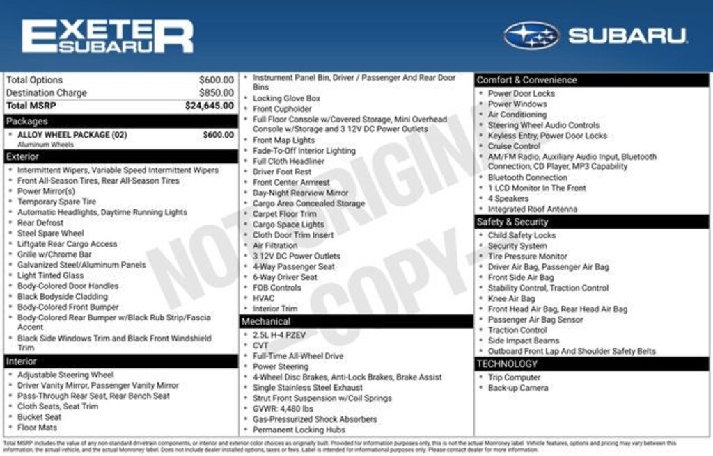 ![]() | Exeter Subaru is your best stop for New and Used vehicles. We're constantly expanding to accommodate our incoming inventory of New Vehicles. So if you don't see something on our Stratham, NH lot, ask a product specialist if we have a vehicle in stock as it may be down the road on one of our two overflow lots. We also take in trades daily and go to the auctions twice a week. If you don't see anything on our site today, check again for new additions tomorrow. Providing the best Used Subaru's and other manufacturer's vehicles to the Exeter, Somersworth, Dover, Plaistow, North Hampton, and Manchester areas. All prices are based on utilizing all available dealer discounts and financing. |