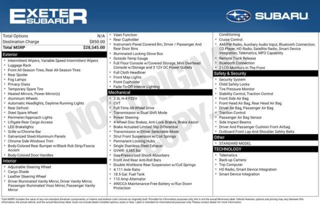 - Radio: Subaru Starlink 7.0" Multimedia Plus System