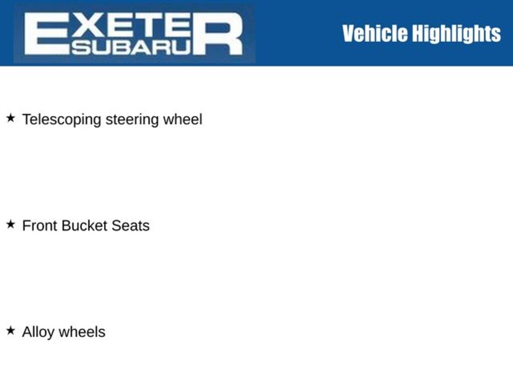 ![]() | Exeter Subaru is your best stop for New and Used vehicles. We're constantly expanding to accommodate our incoming inventory of New Vehicles. So if you don't see something on our Stratham, NH lot, ask a product specialist if we have a vehicle in stock as it may be down the road on one of our two overflow lots. We also take in trades daily and go to the auctions twice a week. If you don't see anything on our site today, check again for new additions tomorrow. Providing the best Used Subaru's and other manufacturer's vehicles to the Exeter, Somersworth, Dover, Plaistow, North Hampton, and Manchester areas. All prices are based on utilizing all available dealer discounts and financing. |