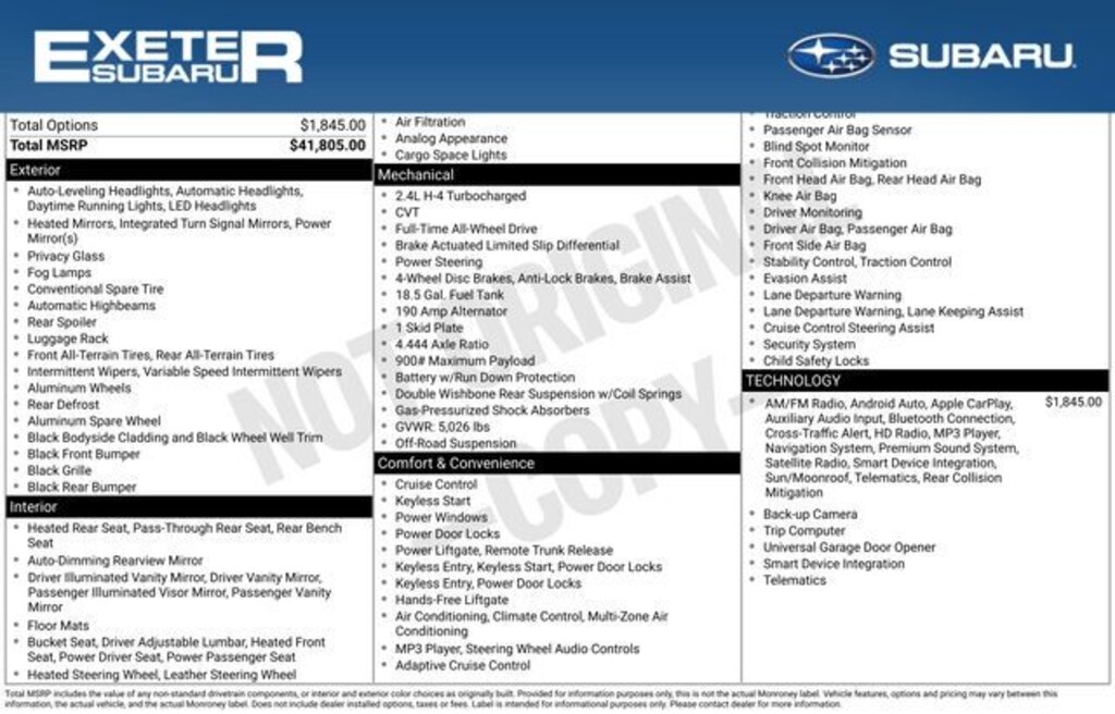 - Radio: Subaru STARLINK 11.6" Multimedia Nav System