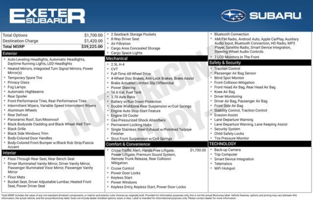 - Emergency communication system: MySubaru Safety (3-year free trial)