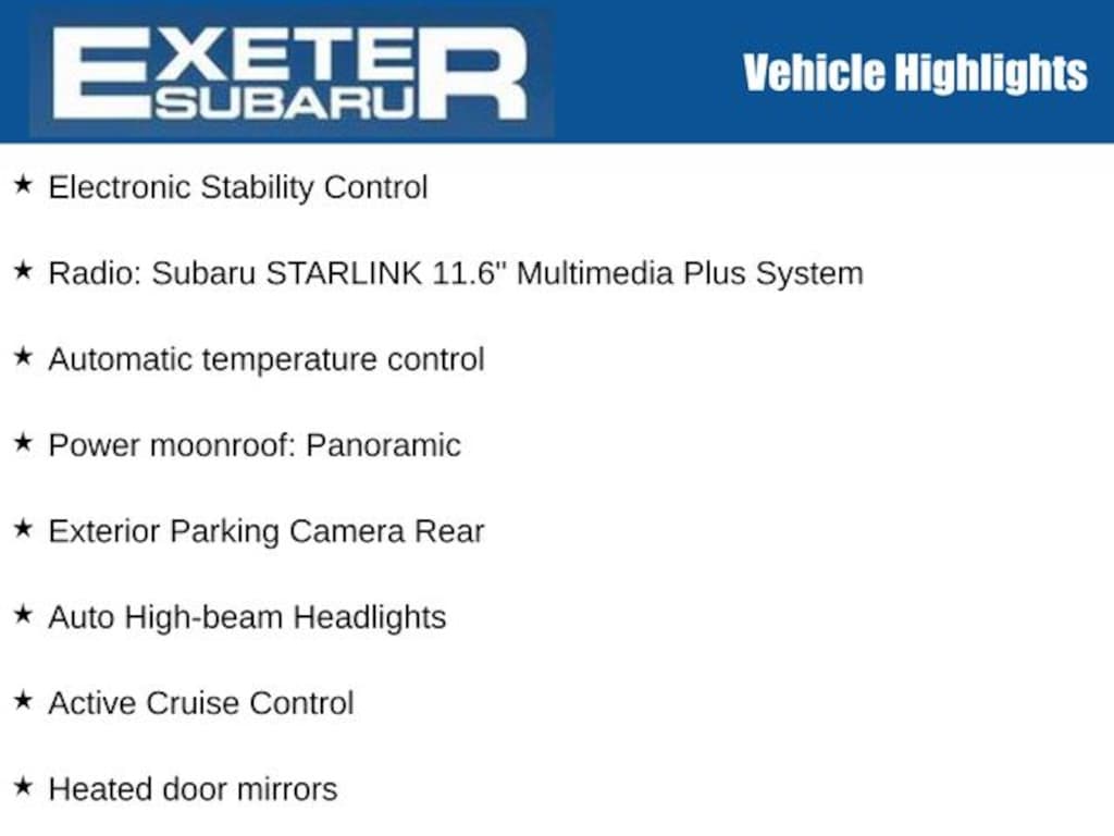 - Radio: Subaru STARLINK 11.6" Multimedia Plus System