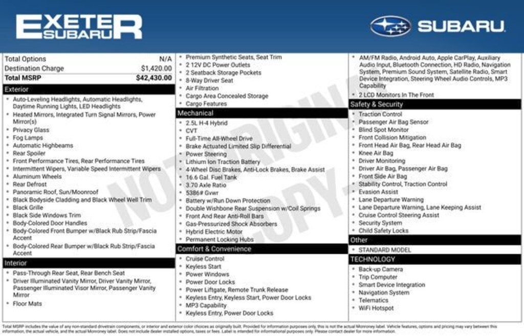 - Radio: Subaru 11.6" Multimedia Navigation System