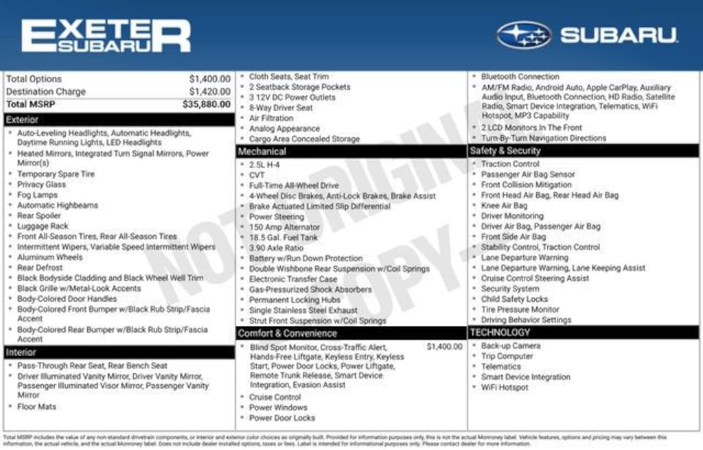 - Radio: Subaru 11.6" Multimedia Plus System