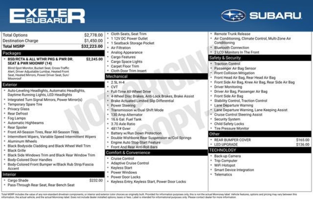 - Tracker system: MySubaru Companion (5-years free)