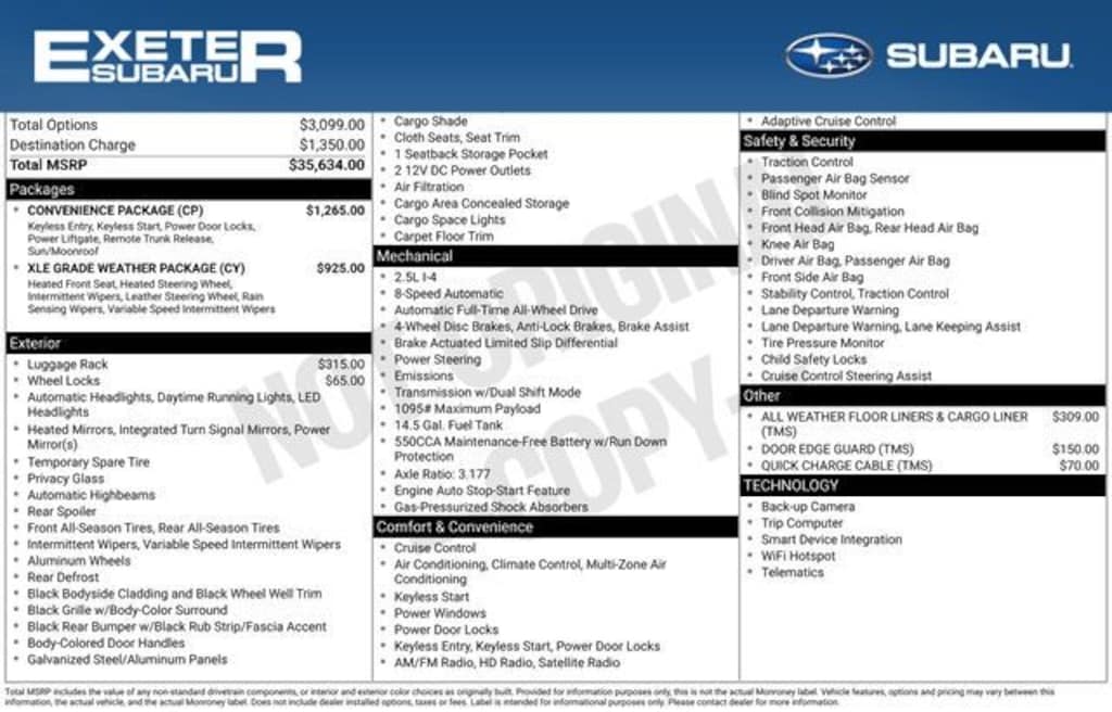 ![]() | Exeter Subaru is your best stop for New and Used vehicles. We're constantly expanding to accommodate our incoming inventory of New Vehicles. So if you don't see something on our Stratham, NH lot, ask a product specialist if we have a vehicle in stock as it may be down the road on one of our two overflow lots. We also take in trades daily and go to the auctions twice a week. If you don't see anything on our site today, check again for new additions tomorrow. Providing the best Used Subaru's and other manufacturer's vehicles to the Exeter, Somersworth, Dover, Plaistow, North Hampton, and Manchester areas. All prices are based on utilizing all available dealer discounts and financing. |